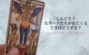 「カードからネガティブな様子が見えるとき、あげ鑑定にはしたくないんですが、しんどそうなカードが出ているときって、なかなか本人を前に言いにくいんです」といったご相談を受けることがよくあるのですが、この記事では、ここに応えてみたいと思います。